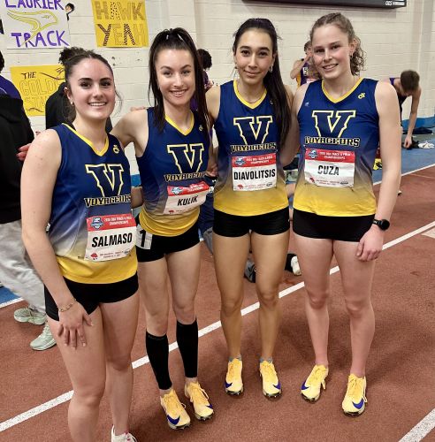 Veteran Keon Wallingford and three very young relay teams (including the women 4 X 400m pictured above) accounted for the quartet of top ten finishes for the Laurentian Voyageurs at the 2026 OUA Indoor Track & Field Championships last weekend at York University ...